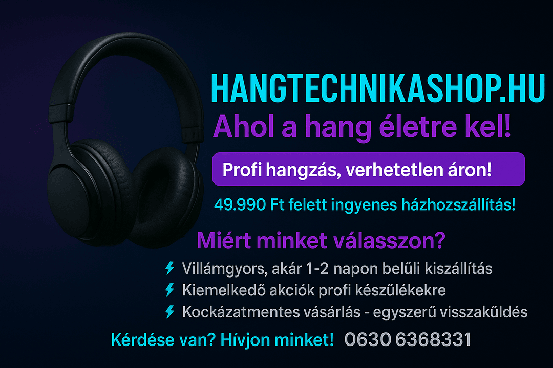 Szenvedélyünk a hang. Csapatunk évtizedes tapasztalattal rendelkezik a hangtechnika világában, és folyamatosan figyeljük az iparág fejlődését, hogy mindig a legújabb és legjobb eszközöket biztosíthassuk vásárlóink számára. Küldetésünk, hogy mindenki megtalálja nálunk azt a felszerelést, amely megfelel az igényeinek, legyen szó otthoni hangrendszerről, koncerttechnikáról vagy stúdiófelszerelésről.